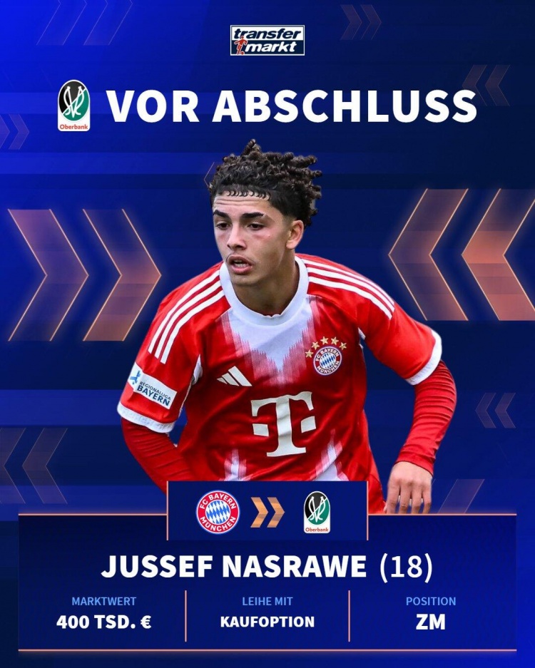 1月23日讯 拜仁官方宣布,18岁中场纳斯拉维租借加盟奥地利俱乐部列特。