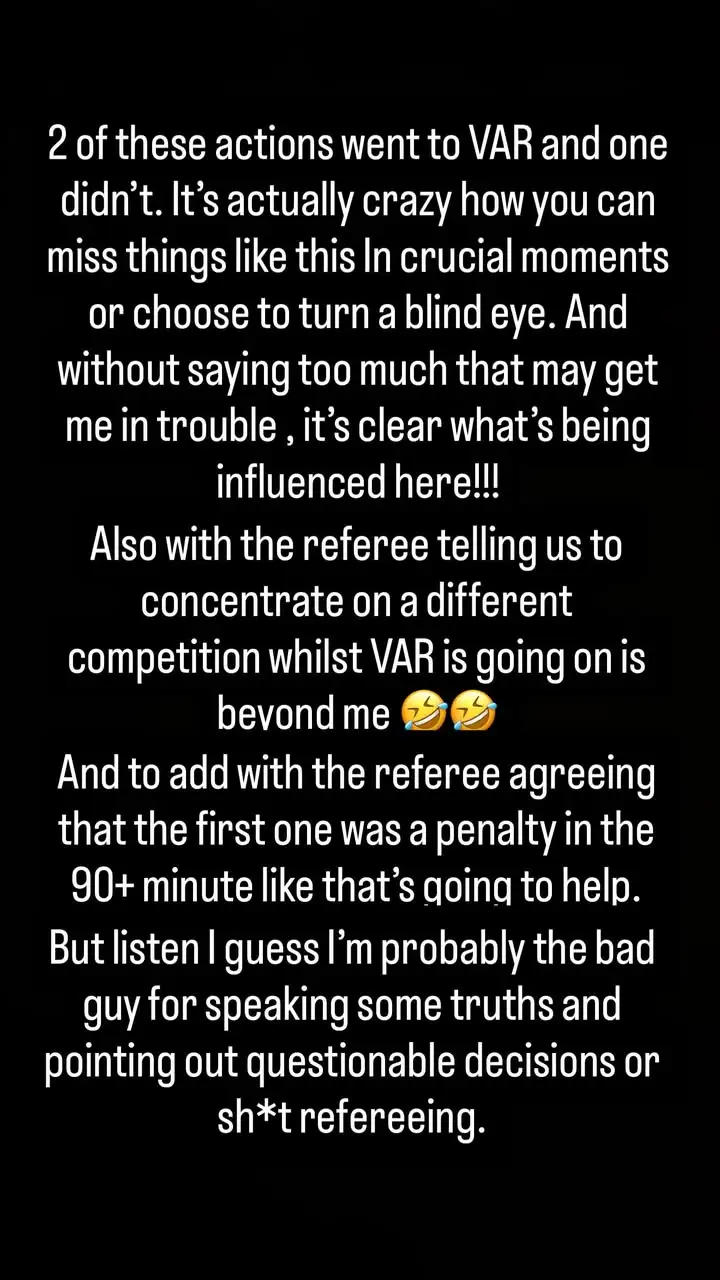 更离谱的是,当VAR正在审核时,主裁判居然告诉我们要去专注于另一项赛事,这简直让我无法理解🤣🤣
